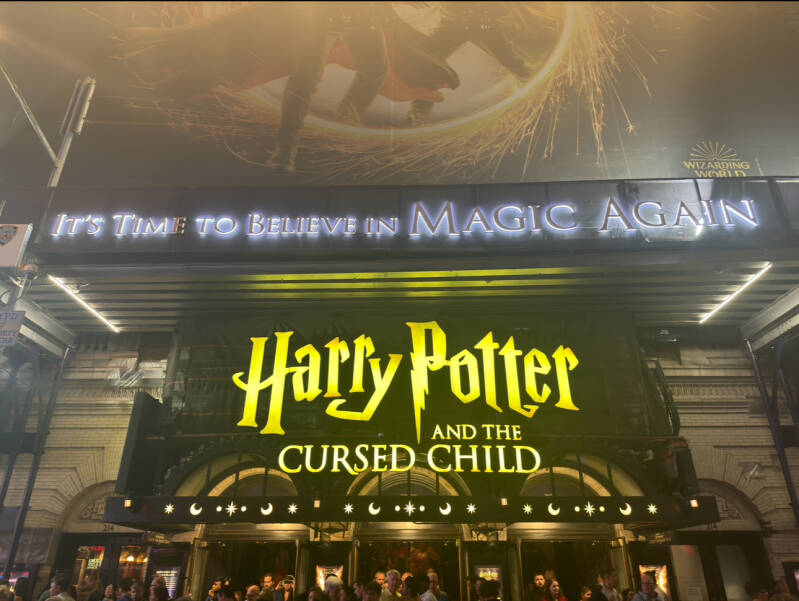 Terug in het hotel fristen we ons snel op en kleedden we ons om voor opnieuw een geweldige avond. Deze keer stond een Broadway-show op de planning. We hadden kaartjes geboekt voor "Harry Potter and the Cursed Child" in het Lyric Theatre. De show begon om 19:00 uur, en hoewel het maar een paar minuutjes lopen was vanaf ons hotel, vertrokken we rond 18:15 zodat we nog even tijd hadden voor wat foto’s en een drankje voordat de magie zou beginnen.